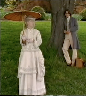 I've been searching the internet during free time to see possible Scarlett dresses. I was looking particularly for this costume for Little Women (1991?) designed by Academy award winner for Costume Design, Colleen Atwood. Materials were gathered from vintage shops. This scene where an adult Amy March is in Paris, shows an elegant and soft day dress which I think would go well with the dolls. Notice the embroidery and the veiled hat which hides her face. The paper parasol is also a nice touch to this costume. Notice too the little combs on the side of the hair and the elaborate hairstyle given to the doll. It is hard to find the time for detail though. Above, the pink day dress in the parlor is also soft and rich. I surmise this is some kind of China silk. Wish this could be done. But still waiting for the Tonner GWTW 2010 release on the 29th. There still is nothing like having your own OOAK. And I think these dresses would make an idyllic Victorian portrait.