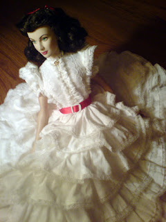 Doll portraiture seems to be my favorite pastime. Not that I have too many dolls (they are very expensive and can take up so much space) mostly GWTW dolls seem to occupy most of my space and time. I knew for a fact that dolls may not last. Time will tarnish the pristine quality by which we came to first know them. So, by accident, while sick and bored I just snapped a shot of my Franklin Mint Scarlett. I had but one lamp, nightime in my room and the doll. I was surprised how this doll was able to reflect the light well. So I did a little more shots and came up with some interesting photos (in my opinion). From then on, it was a love affair with Scarlett as my favorite model (more so now because I have one which is articulated -- but not so much as to pose her a la Sybarite). Many people ask me about tips about how I shoot dolls, so let me share what I un-professionally know. I hope it will help.